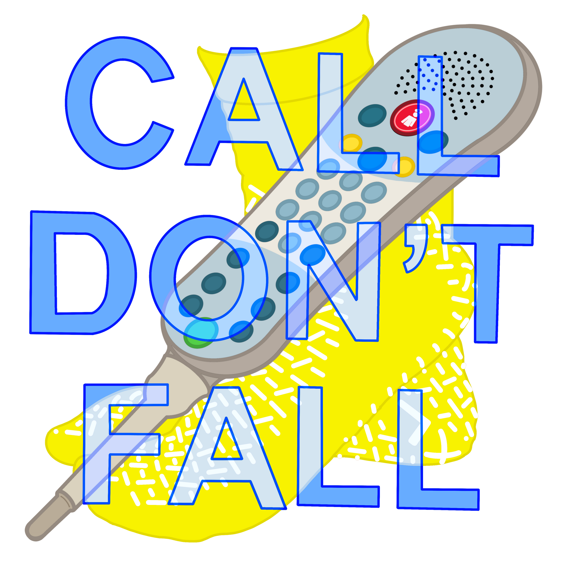 Bold blue lettering drives home the eternal message we chant in our sleep: “Call. Don’t. Fall.”