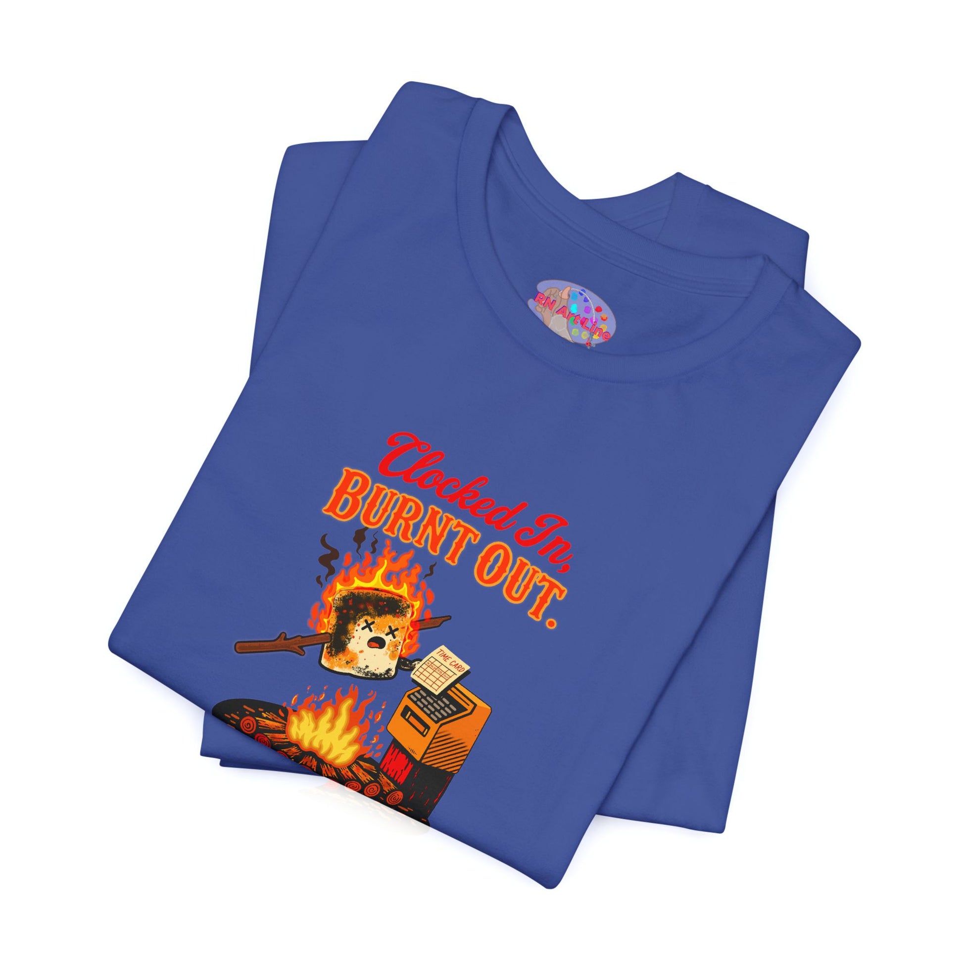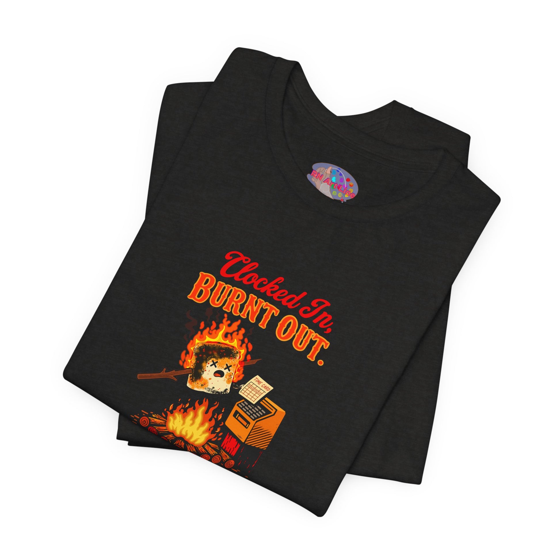 Welcome to the shift where your patience evaporates, your charting multiplies, and your soul slowly roasts like a marshmallow over the unit’s dumpster fire. This shirt is for anyone who clocks in already tired, gets hit with ten tasks before report ends, and still manages to function like a medically-trained raccoon with a badge.