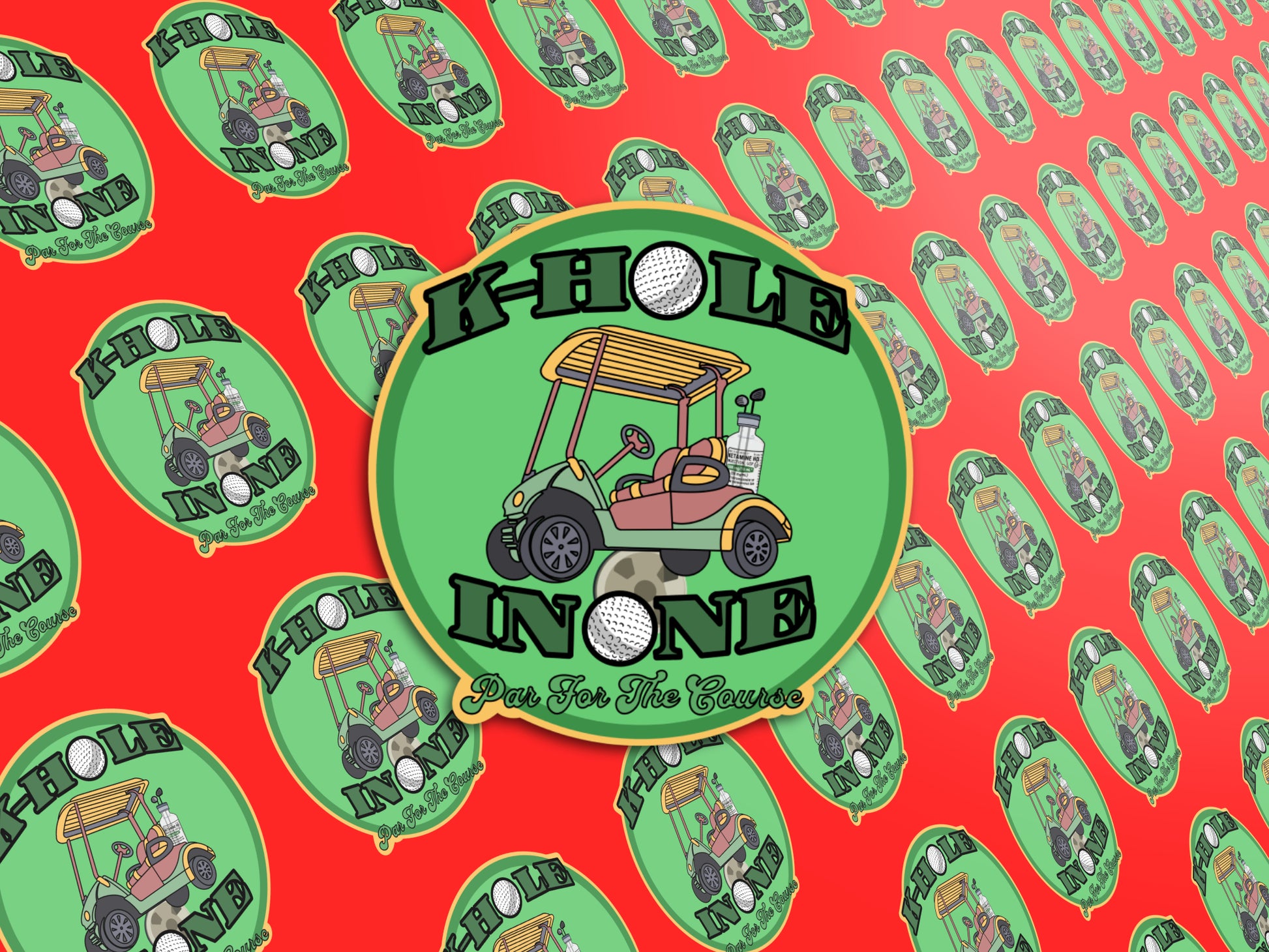 Score a laugh with our "K-Hole In One, Par For The Course" sticker! This playful design features a golf cart carrying a ketamine IV bottle as the golf bag, blending medical humor with a golfing twist. Perfect for anesthesiologists, ICU nurses, and healthcare professionals who enjoy puns and creative designs, this sticker is a fun way to personalize your gear.