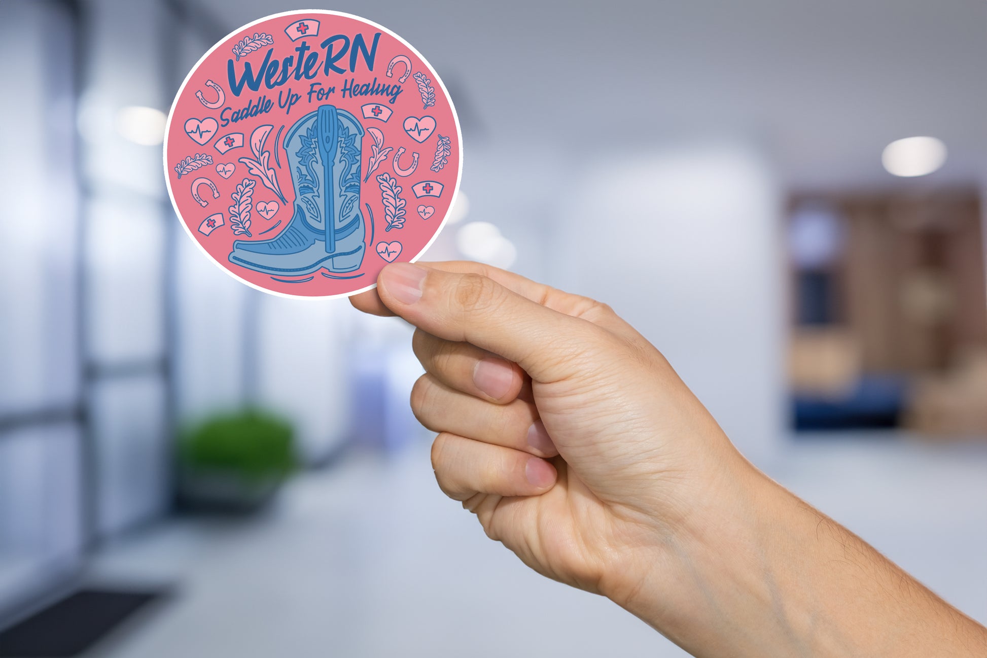 Celebrate the healing power of nurses with this funny "Saddle Up For Healing" Western sticker featuring a cowgirl boot, heart, and nurse cap design. Perfect for decorating laptops, journals, and windows, this vibrant sticker adds a touch of humor and whimsy to your everyday life. Ideal for nurses, nursing students, and healthcare professionals. Great for Nurse Appreciation Week, birthdays, and just because gifts.