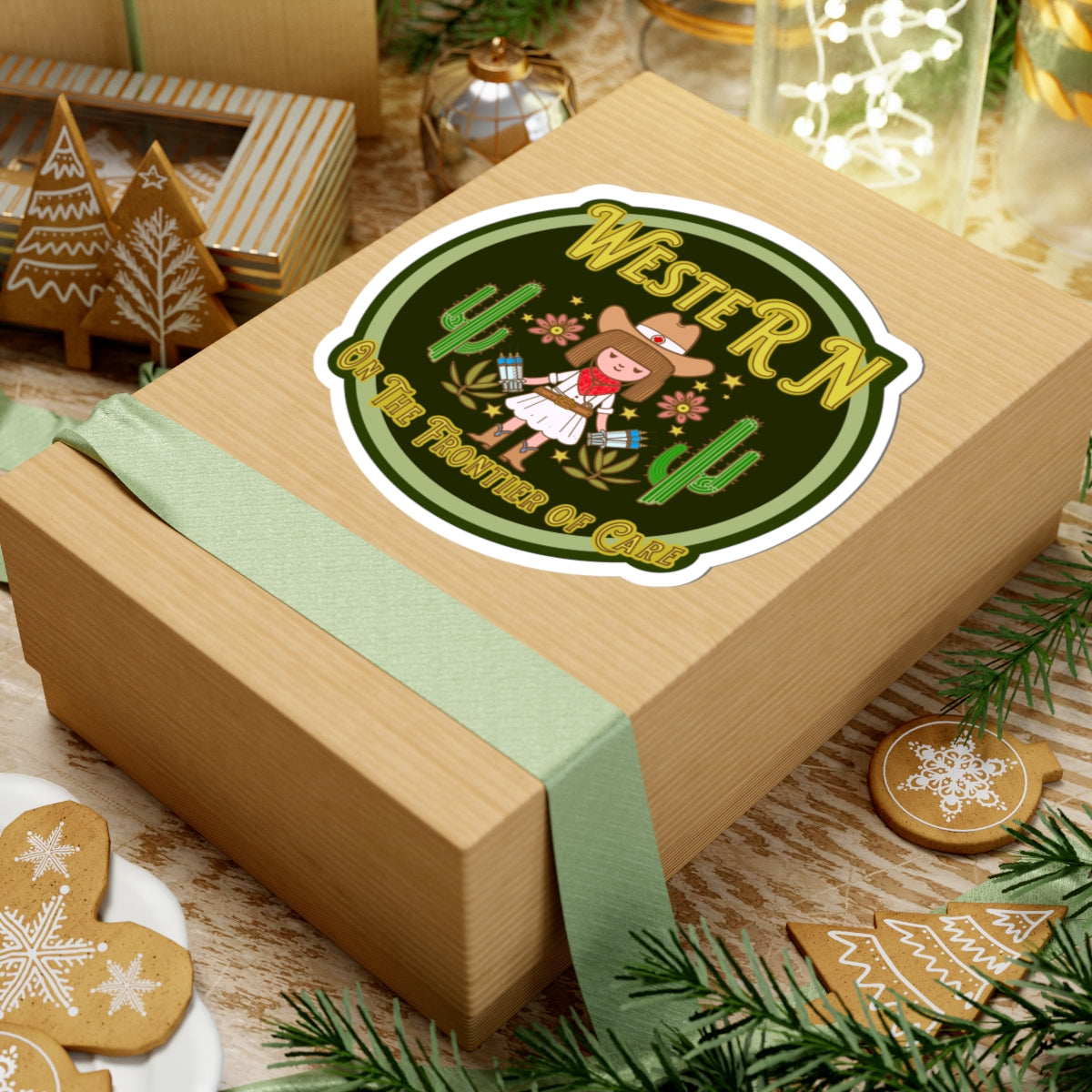 Celebrate the spirit of Western nurses with our "WesteRN" sticker! This unique design showcases a rugged nurse holding a handful of needles, surrounded by cacti and a Western motif, symbolizing the resilience and dedication of nurses on the healthcare frontier. Complete with the subheading "On the Frontier of Care," this sticker is a tribute to the strength and pioneering spirit of nurses, especially those in the West.